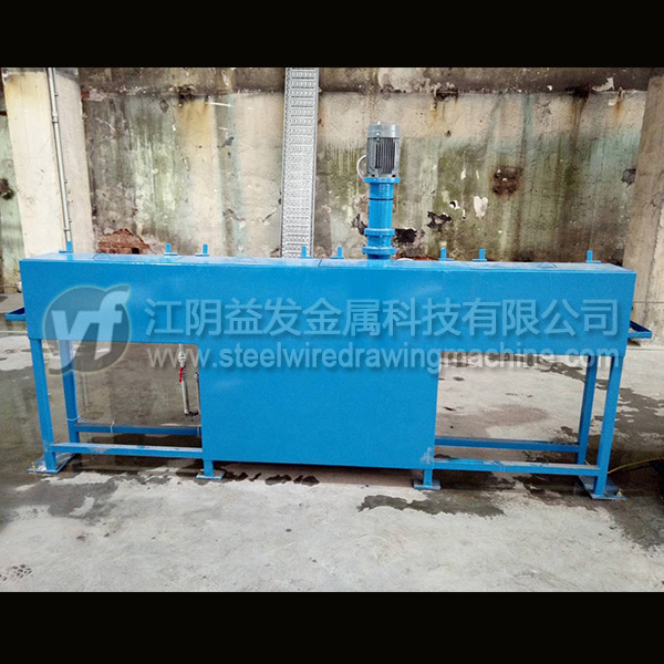 箱體采用Q235板焊接而成,內(nèi)膽采用314不銹鋼板焊接防止硼砂水受銹蝕的污染,保持硼砂的純潔度,保持鋼絲涂硼效果。兩層之間有40mm的保溫棉。不銹鋼電加熱管12KW,有熱電偶控制溫度,1.5KW的提升泵用于硼砂水上下循環(huán),相當(dāng)于自動攪拌,箱體上層液體采用了多次溢流方式,出口處高壓氣吹用于調(diào)節(jié)鋼絲表面的硼砂量。長度2500MM,寬度500mm,高度1100mm,重量800Kg。